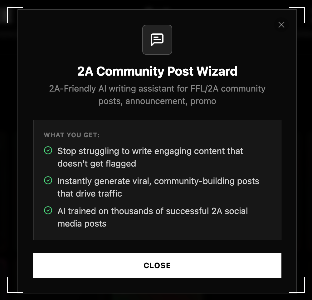This is your bespoke blueprint for guaranteed growth in the 2A/FFL market. (*beta soon closed)